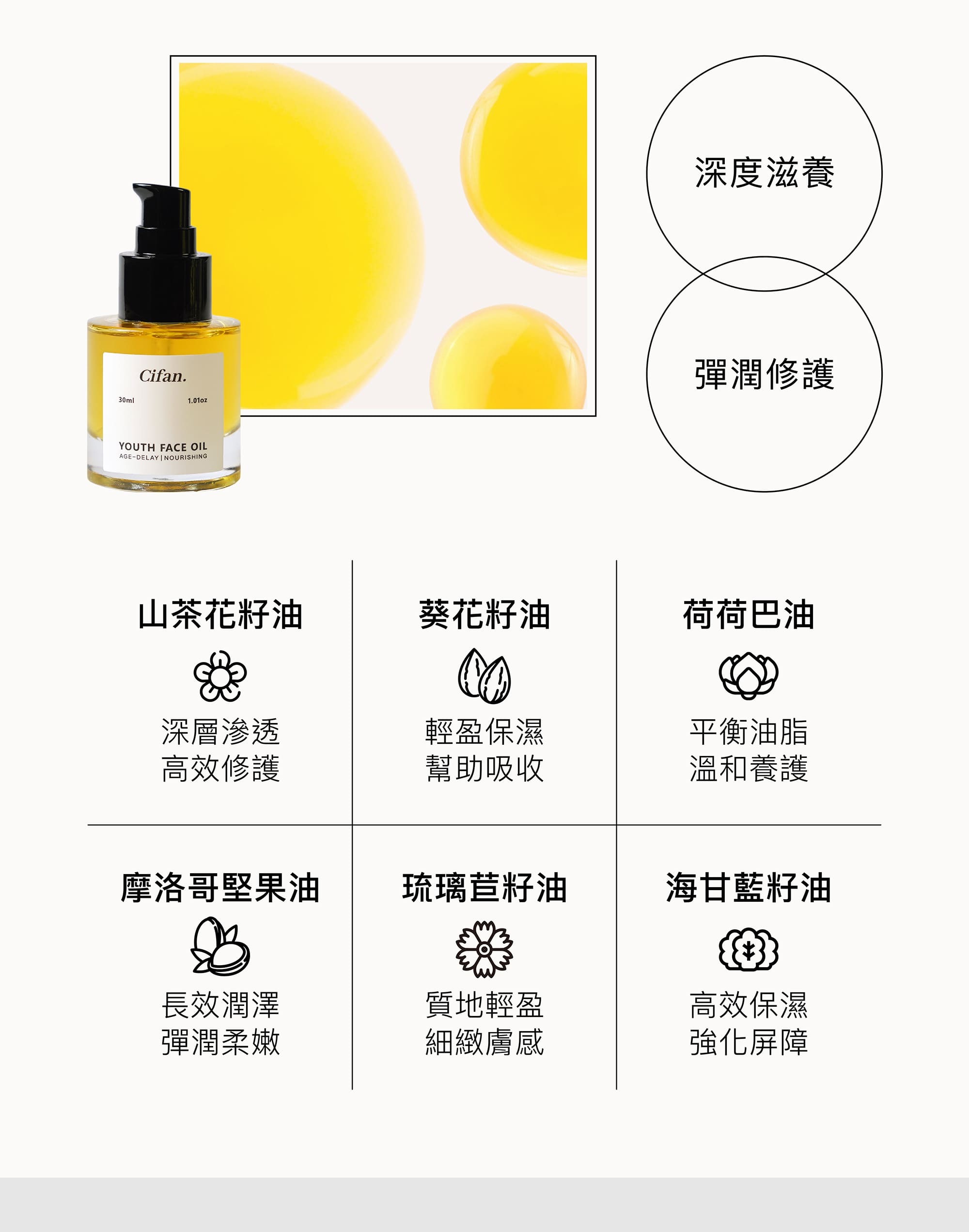 • 海甘藍籽油 + 琉璃苣籽油|親膚穩膚,修護乾燥粗糙,預防細紋生成
