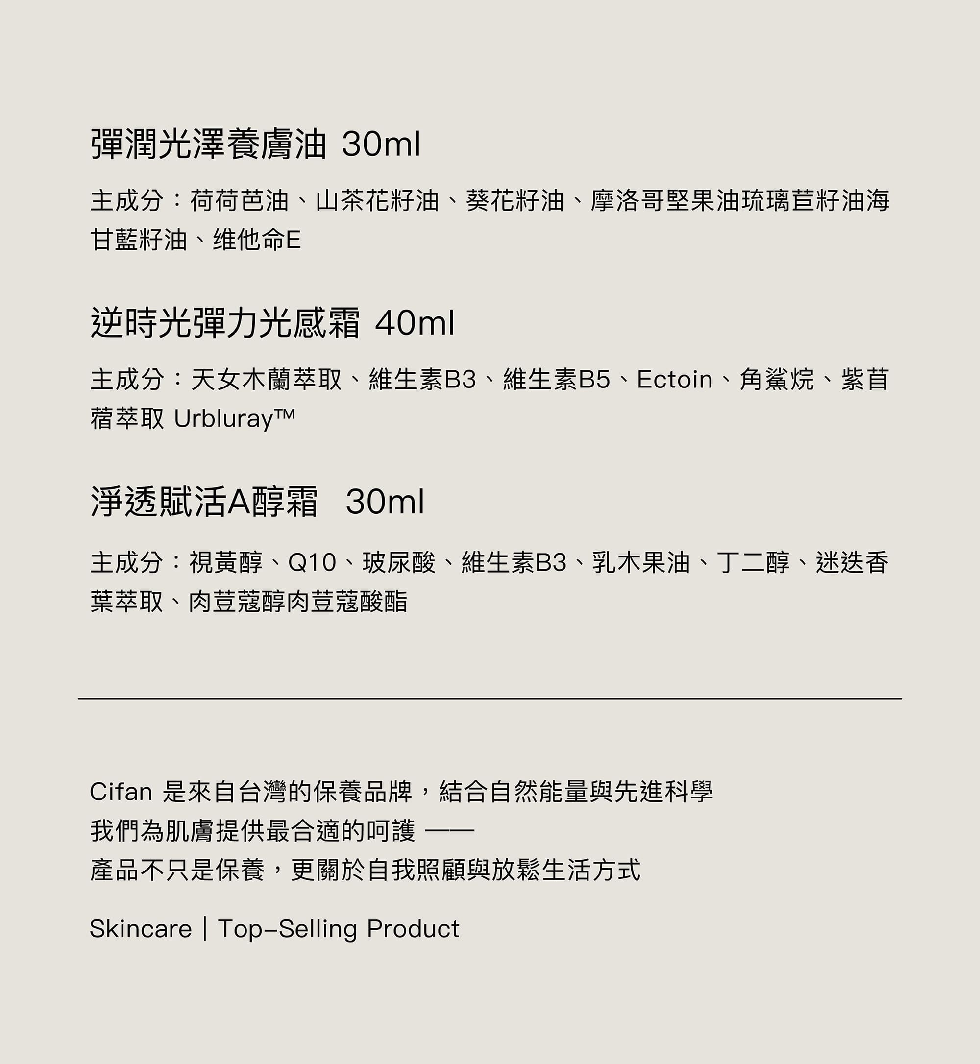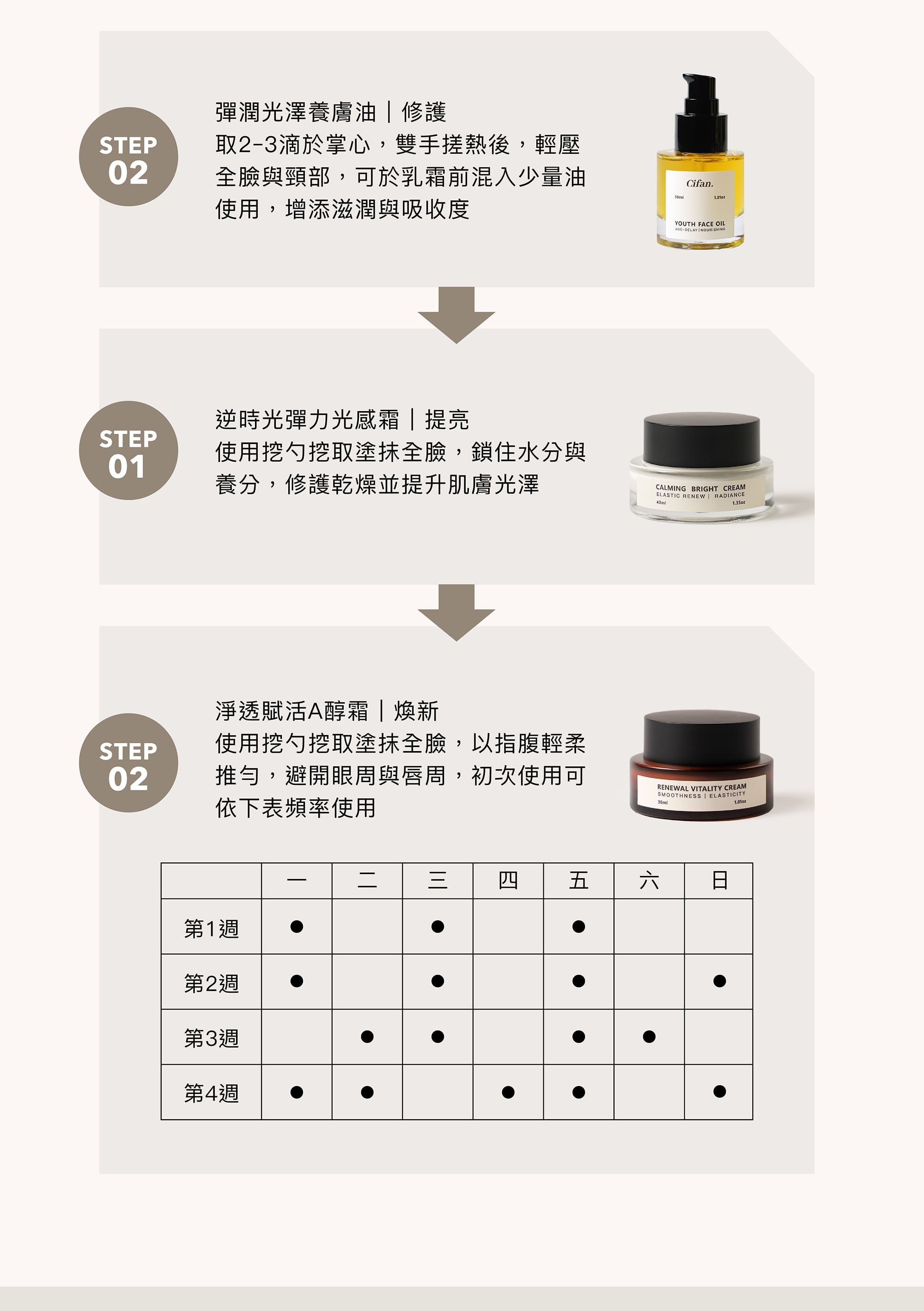 • A醇|促進肌膚更新,改善細紋、毛孔與膚質粗糙