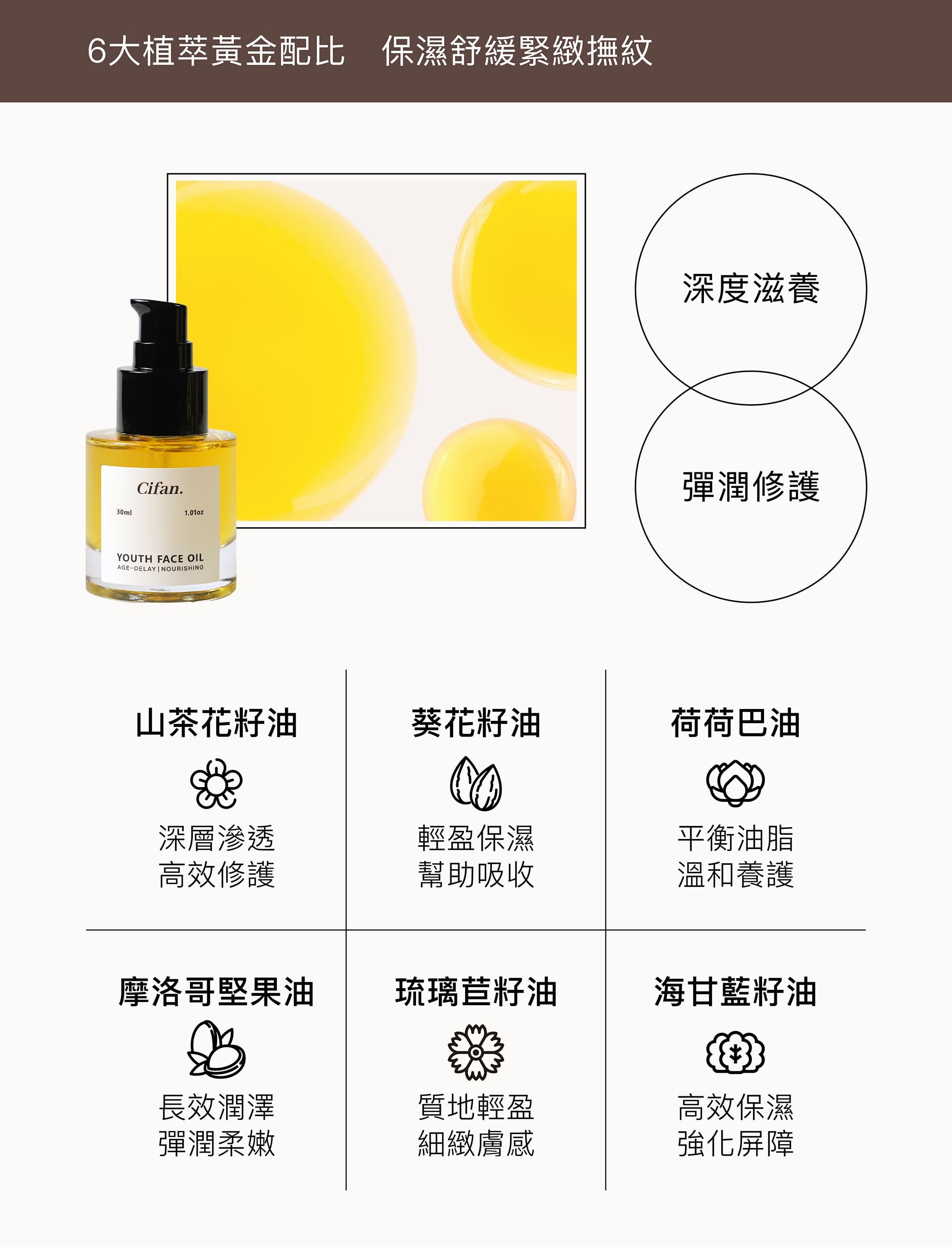 • 海甘藍籽油 + 琉璃苣籽油|親膚穩膚,修護乾燥粗糙,預防細紋生成