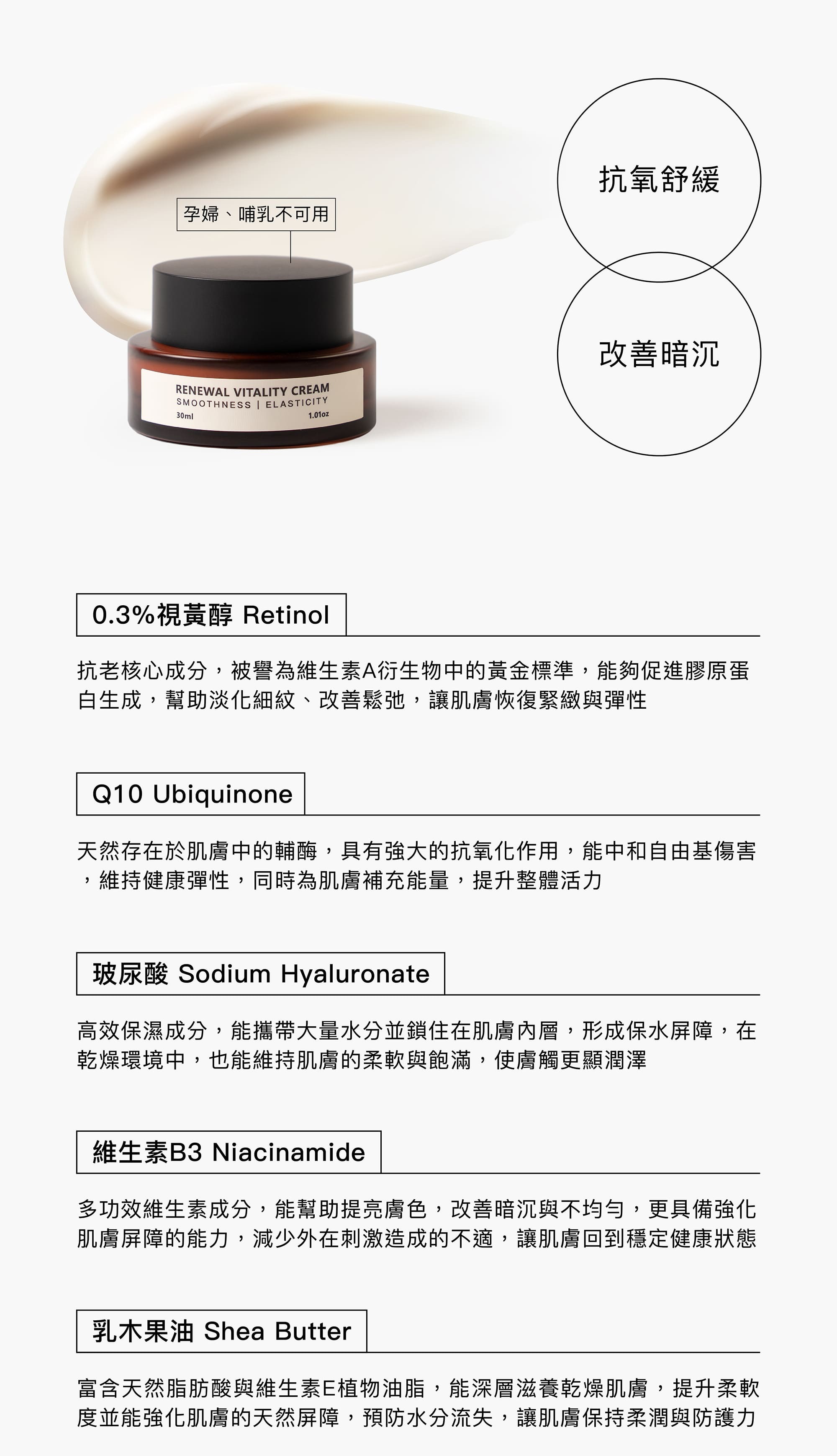 • A醇|促進肌膚更新,撫平細紋與毛孔粗大