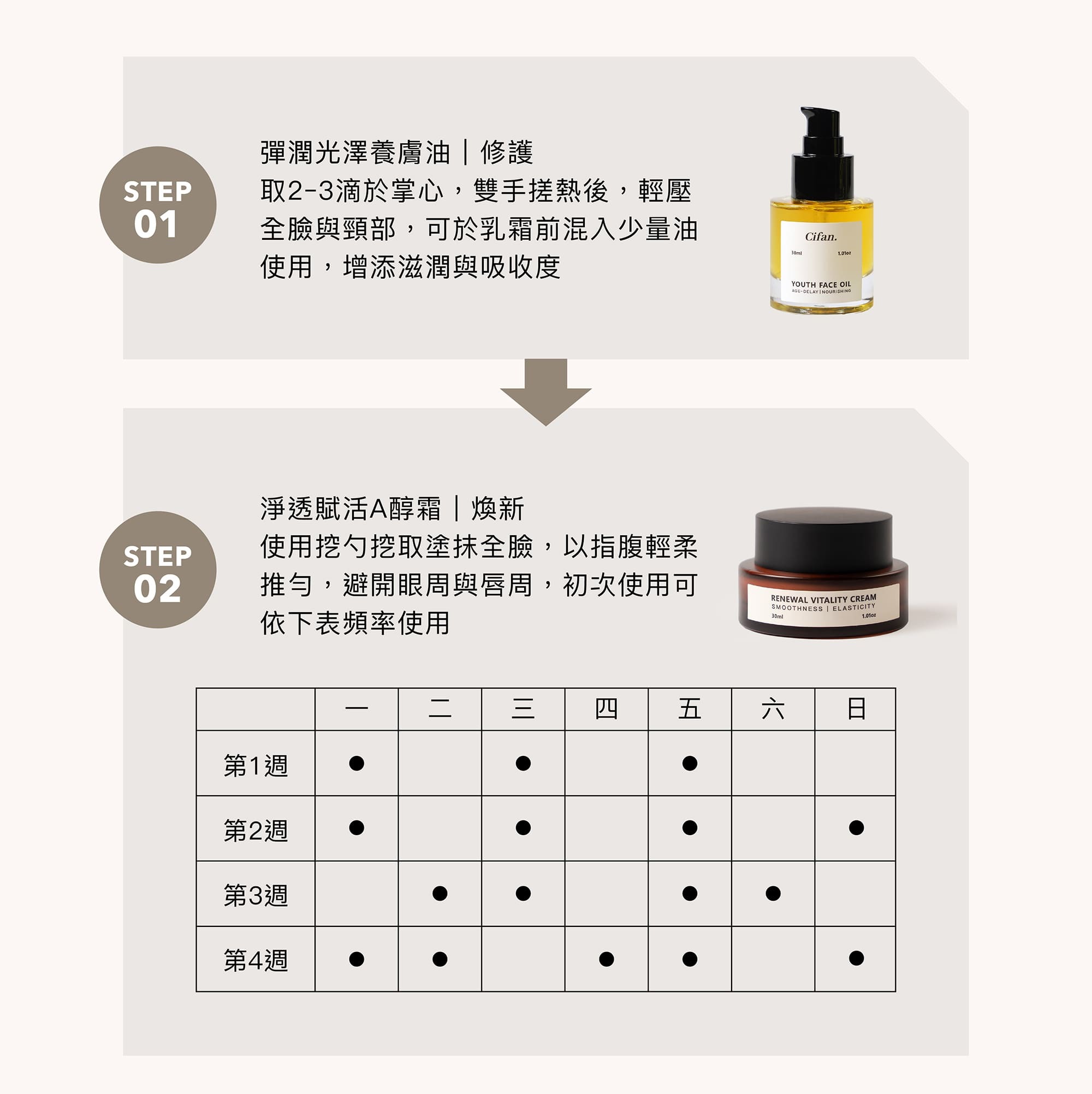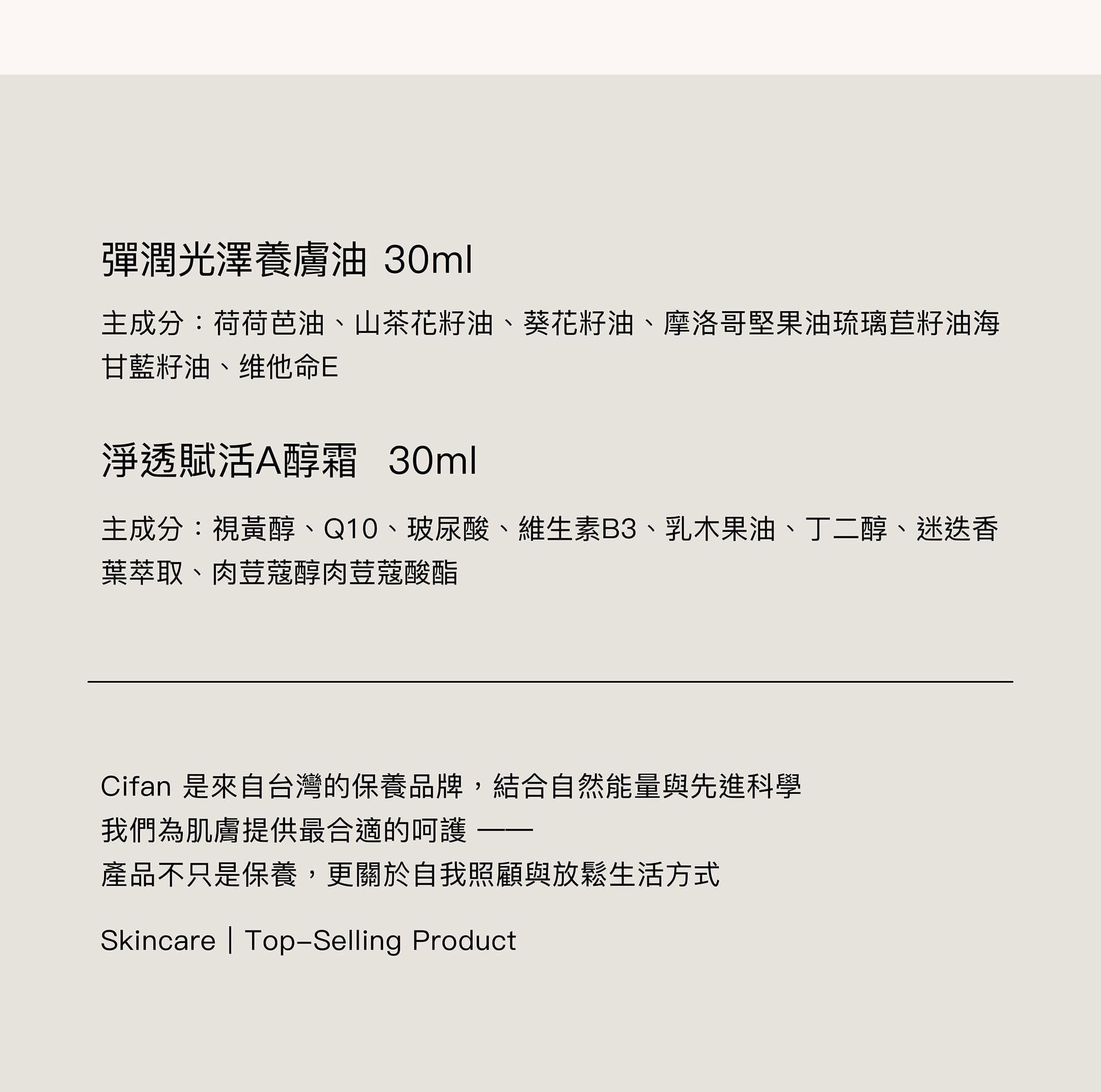 • 養膚油打底滋潤,幫助後續A醇更穩定吸收