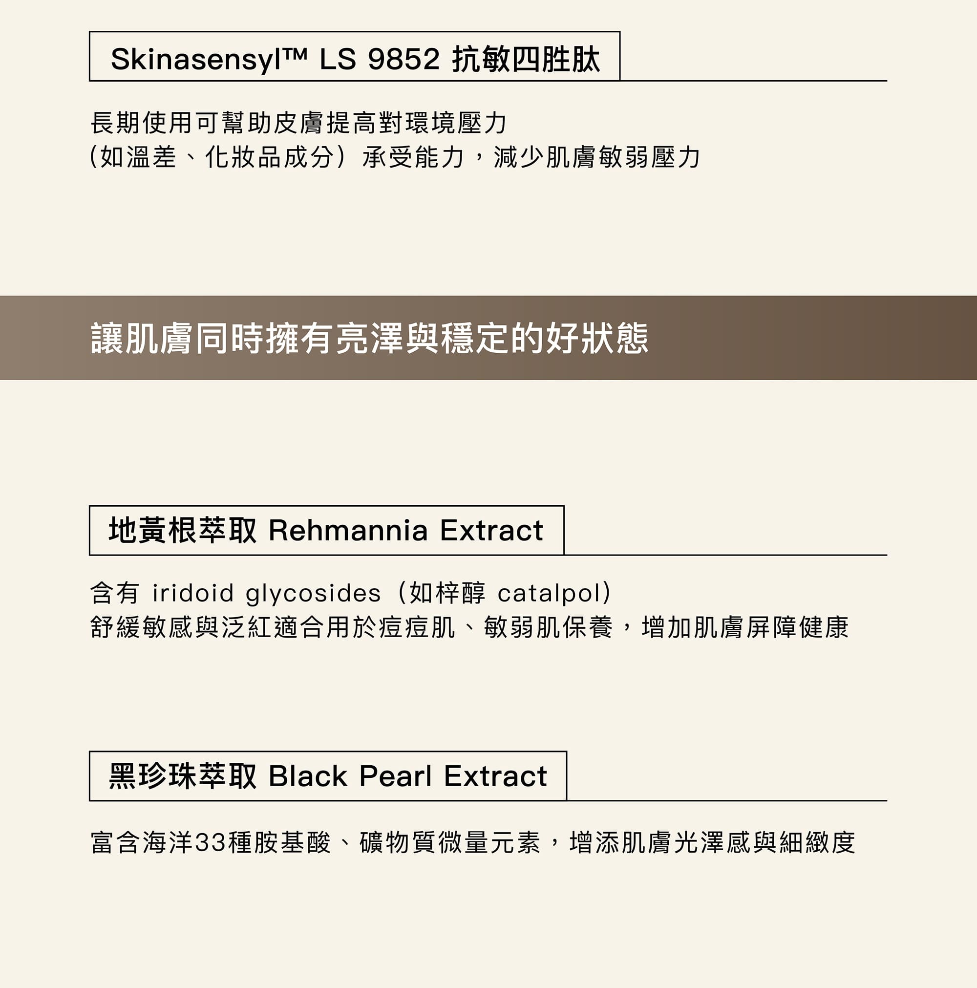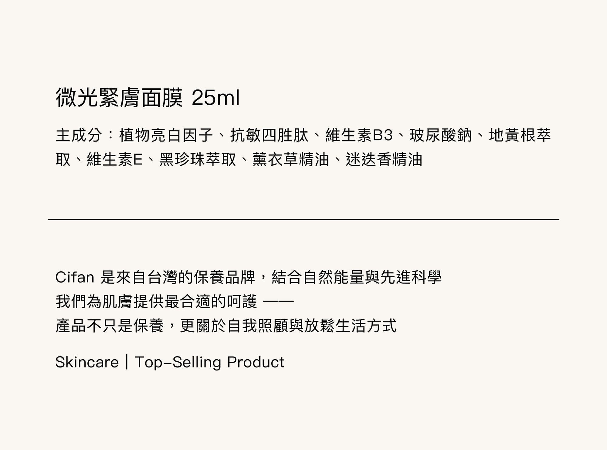 • 黑珍珠萃取|富含胺基酸與礦物元素,有助提升肌膚光澤