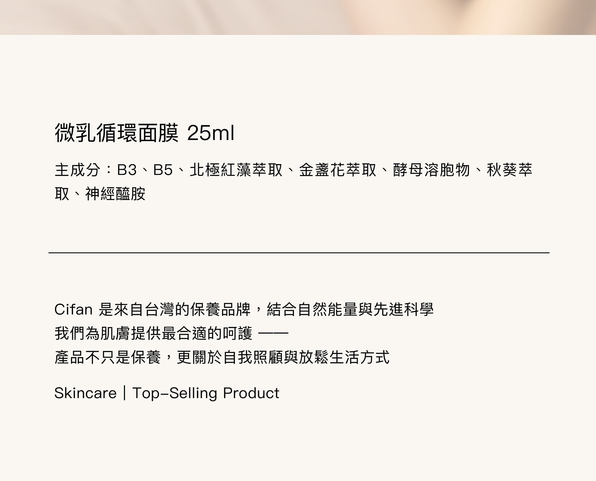 • 北極紅藻萃取|激活肌膚循環,提亮膚色
