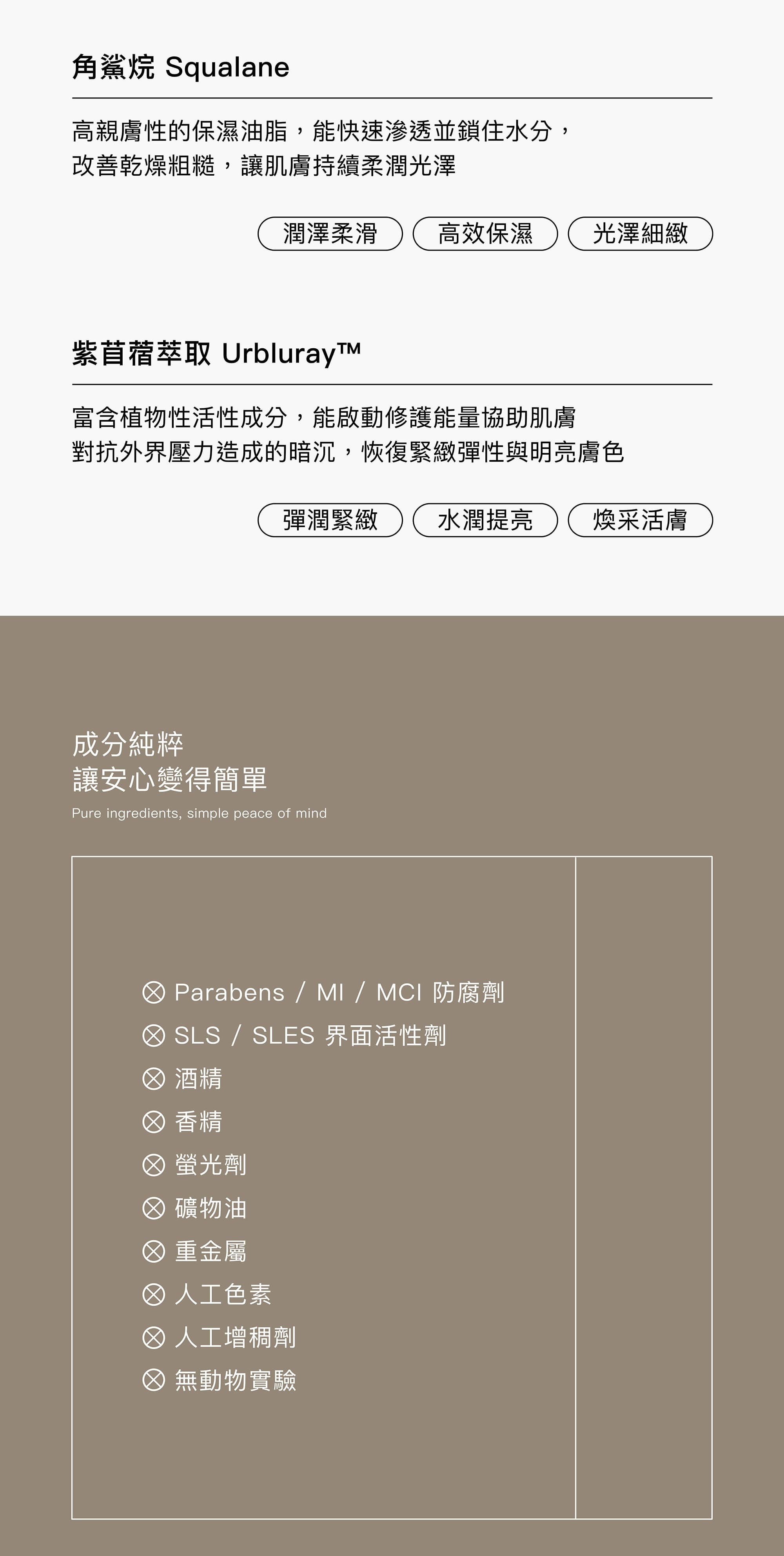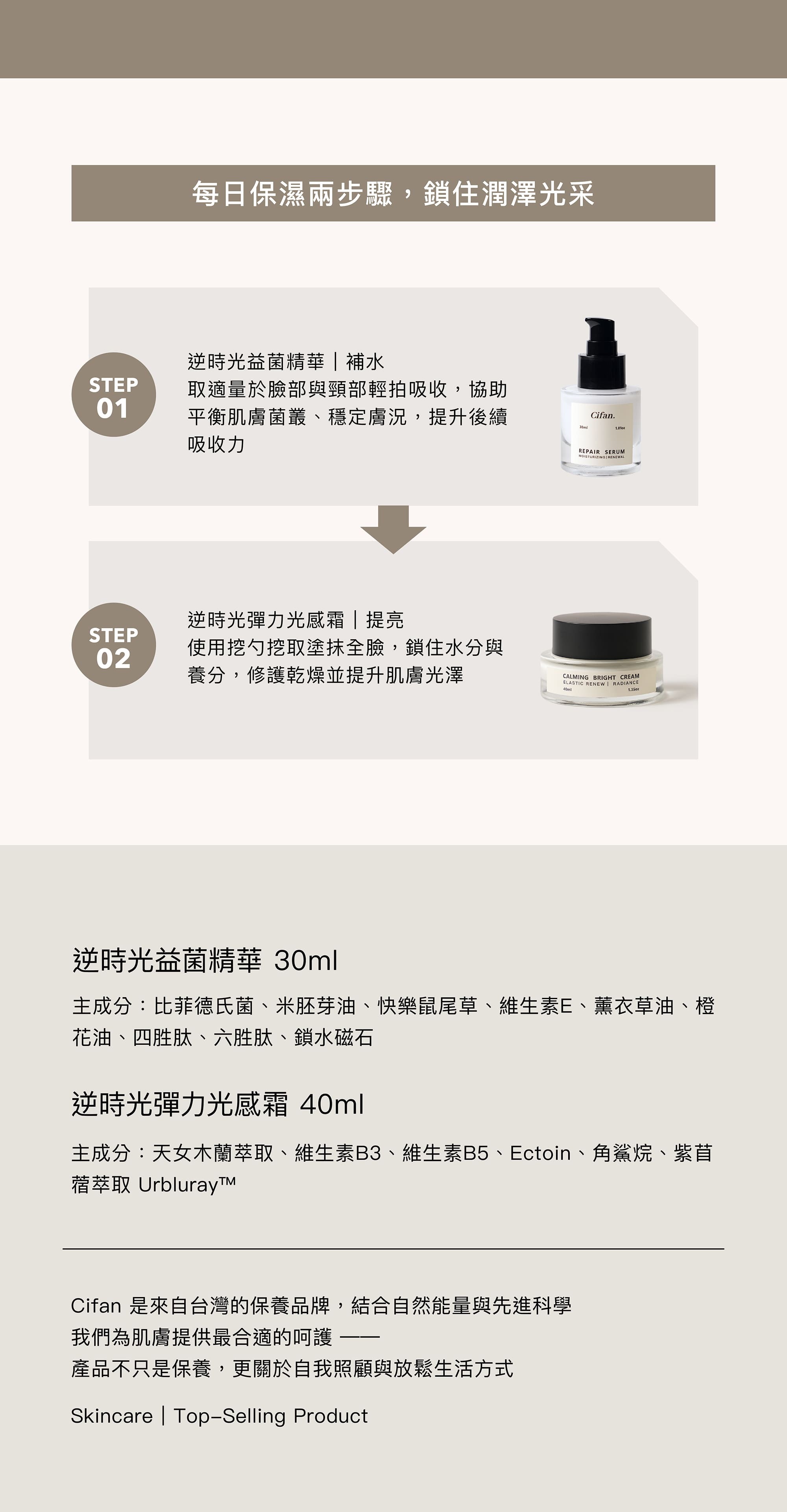• 打底 + 修護 + 鎖水 兩步驟完整保濕方案