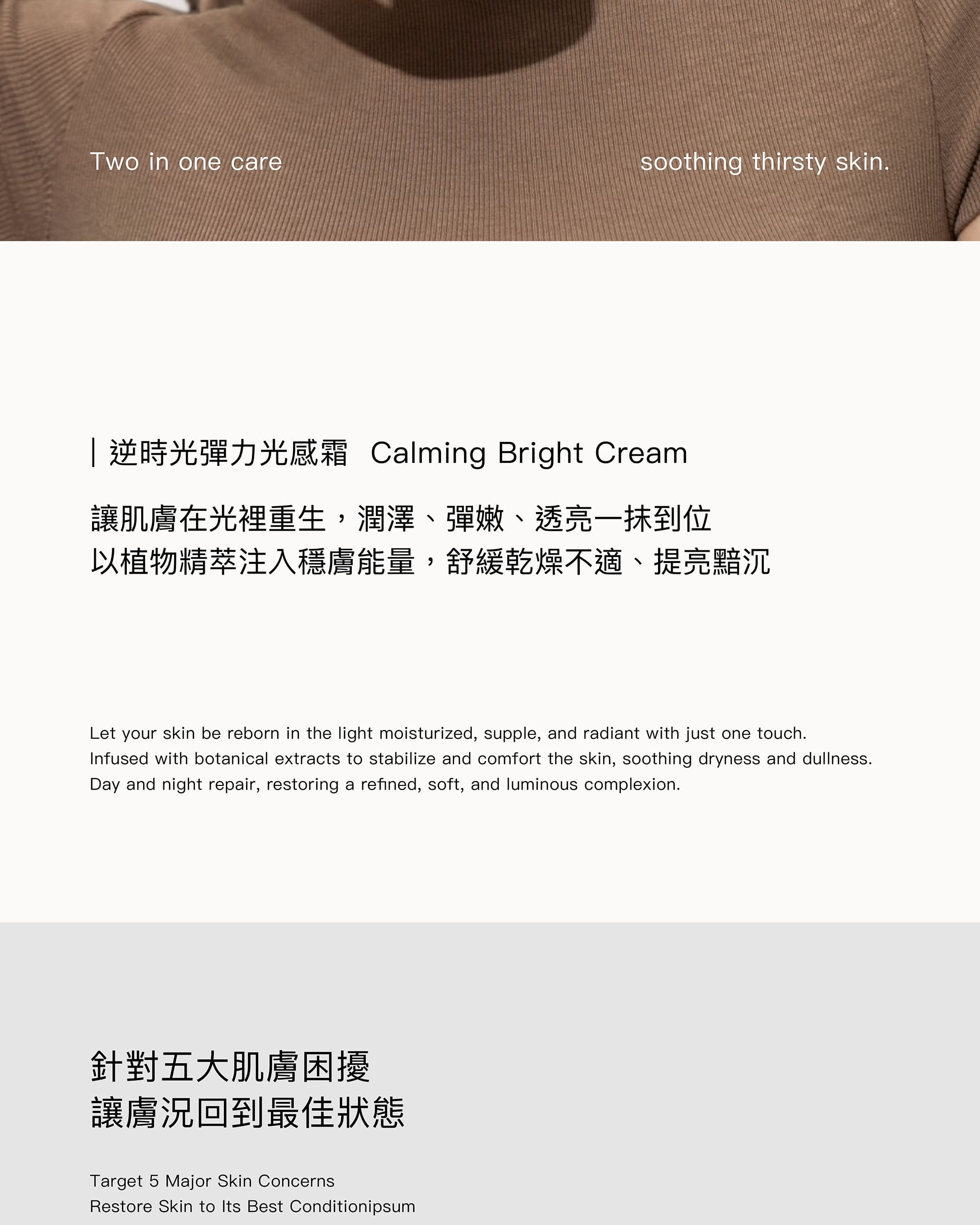 讓肌膚在光裡重生,潤澤、彈嫩、透亮一抹到位。以植物精萃注入穩膚能量,舒緩乾燥不適、提亮黯沉,日夜修護,重拾細緻柔嫩的光感肌